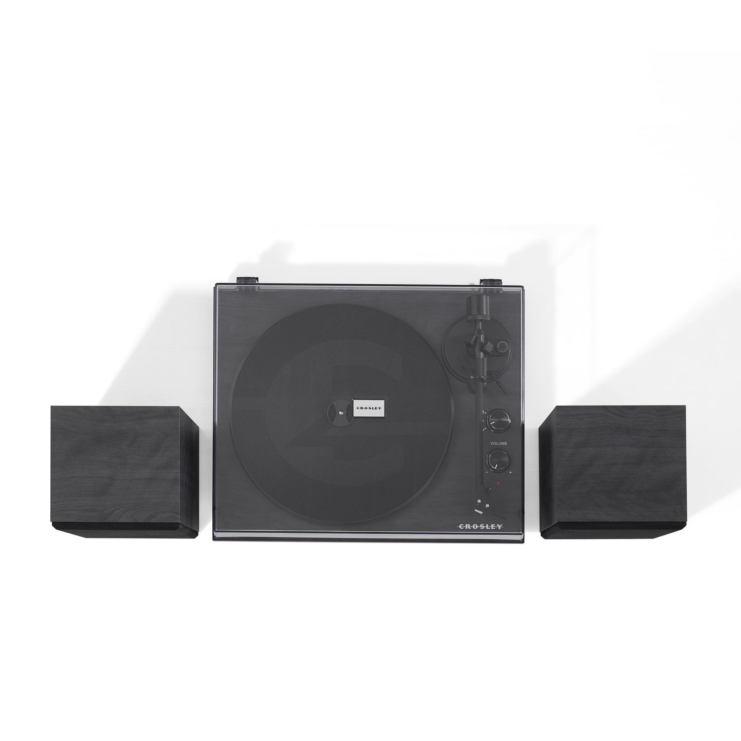The Crosley C62 in Black was designed to be a ready-to-go-sounds-darn-good-straight-out-of-the-box turntable system that doesn’t break the bank. This fully manual two-speed (33 1/3 & 45 RPM) turntable sports an MDF plinth wrapped in a faux walnut veneer that would fool the best of lumberjacks. The matching MDF speakers look just as good as the turntable and each rock a mid-range speaker and tweeter. The matte black aluminum tonearm has an adjustable counterweight and comes pre-mounted with a moving magnet cartridge. Of course, the cartridge is mounted with the standard 1/2” mount, so you can always upgrade your cartridge/stylus combo as your vinyl collection grows. The record sits on a heavy steel platter that helps keep the C62 firmly planted on its three vibration control feet. Take that, rouge vibrations! The super minimal, two-knob design makes it easy to switch speeds, crank up the volume, and switch to the built-in Bluetooth receiver if you want to stream music from your favorite digital playlist. Whether you live in a sweet NYC loft or a teenage bedroom filled with angst, the C62 can hold its own.