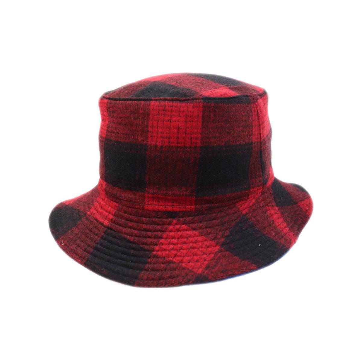 Rural look wool mix bucket hat. Reversible hat in red and blue.