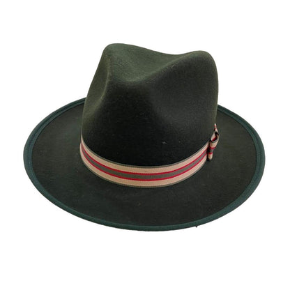 Traditional Merino wool felt fedora with matching Petersham trim and soft cotton sweatband.